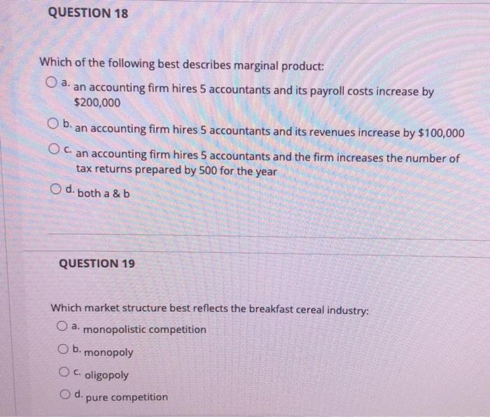 Solved Question 18 Which Of The Following Best Describes Chegg Com